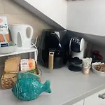 تشتمل الشقة على أدوات تحضير القهوة والشاي والمطبخ المجهز بالغلاية الكهربائية والمجمدة والموقد المسطح.